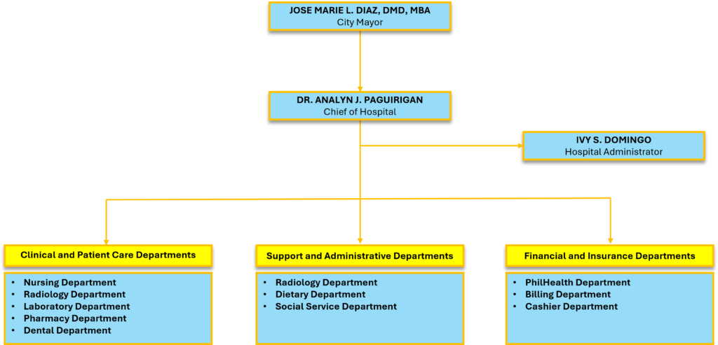 All departments of the San Antonio City of Ilagan Hospital (SACIH) play a vital role in ensuring the efficient delivery of quality healthcare services. From patient care and medical diagnostics to administrative support and financial services, each department contributes to the hospital’s overall operations. The PhilHealth, Billing, and Cashier Departments facilitate financial transactions and insurance processing, while the Nursing, Radiology, Laboratory, and Pharmacy Departments ensure accurate diagnoses, proper treatment, and patient recovery. Meanwhile, the Dietary and Social Service Departments address patients’ nutritional and social needs, enhancing their well-being. The Medical Records Department ensures accurate documentation, while the Dental Department provides essential oral healthcare. Together, these departments form a cohesive system that enables SACIH to provide comprehensive and accessible healthcare services to the community.